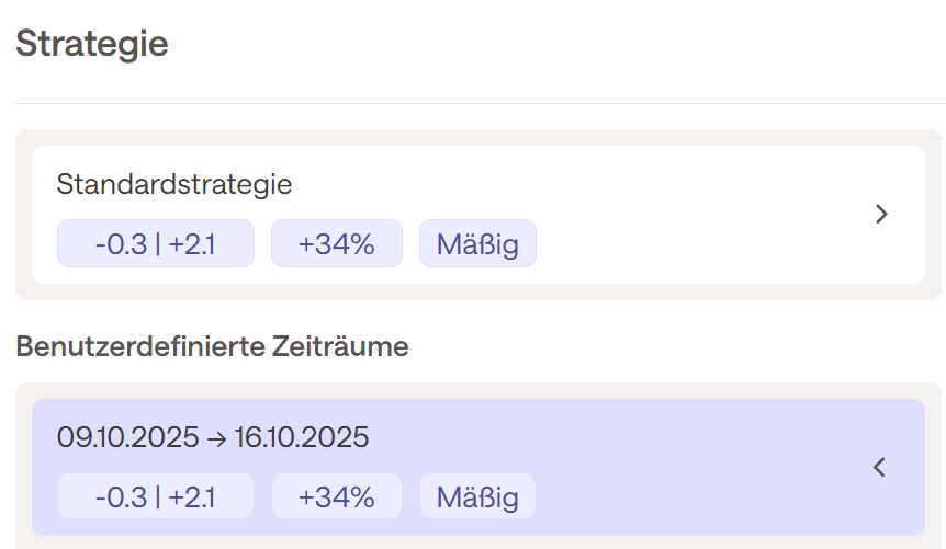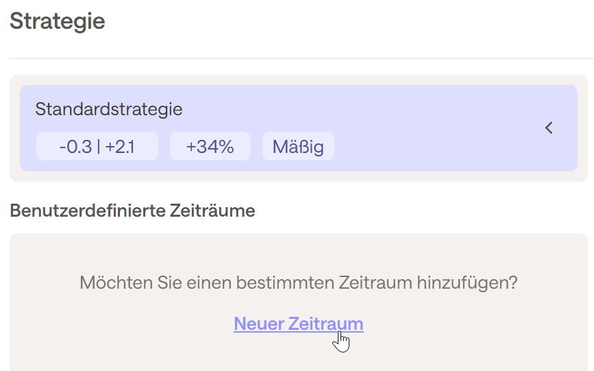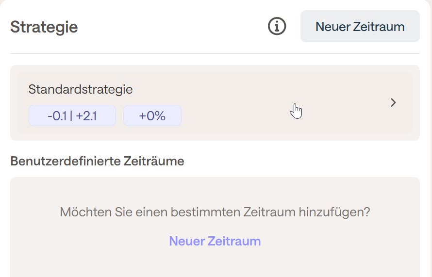 Wie bereits erwähnt, ist es möglich, die Standardstrategie mithilfe von benutzerdefinierten Zeiträumen weiter anzupassen. Diese Datumsbereiche mit spezifischen Einstellungen können die Standardstrategie überschreiben.