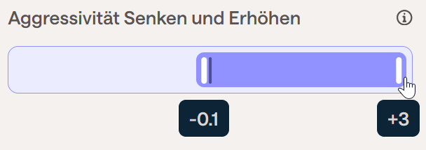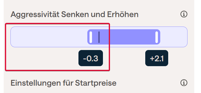 Wenn Sie den Preisanstieg stärker begrenzen möchten, als es die Standardstrategie (mit der Einstellung +1) tun würde, können Sie dies tun, indem Sie den Schieberegler von z. B. +1 auf +0,5 bewegen. Auf diese Weise wird der vorgeschlagene Preis niedriger sein als der der Standardstrategie.
