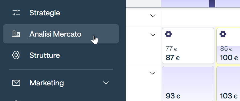 Analisi Mercato è lo strumento col quale è possibile osservare le tendenze dei potenziali concorrenti identificati dall'IA di Smartpricing, oltre a quelli che potete aggiungere manualmente e costruire il mercato che influenza la vostra strategia.