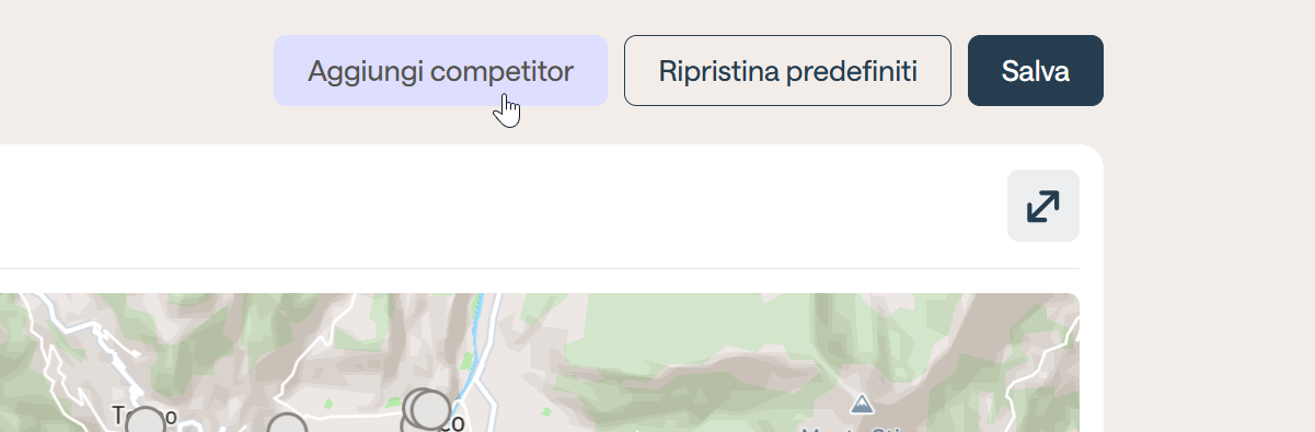 I competitor disattivati con questa azione, possono essere ripristinati cliccando sulla freccia alla destra della stessa riga. I competitor invece inseriti manualmente, normalmente evidenziati col testo in grigio, verranno immediatamente rimossi dalla lista e non sarà più possibile vederli.